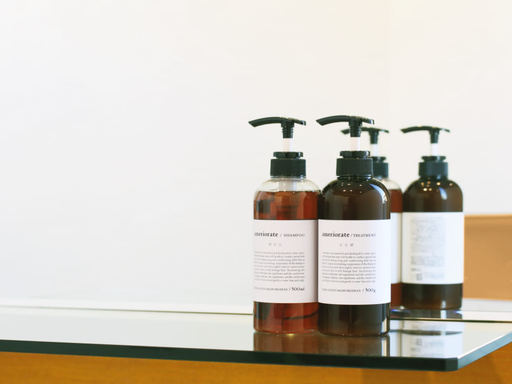 自社開発のシャンプー・トリートメント・ヘアケア商品など、使用薬剤やヘアケア剤にもこだわり、最後まで責任を持って丁寧に施術いたします。